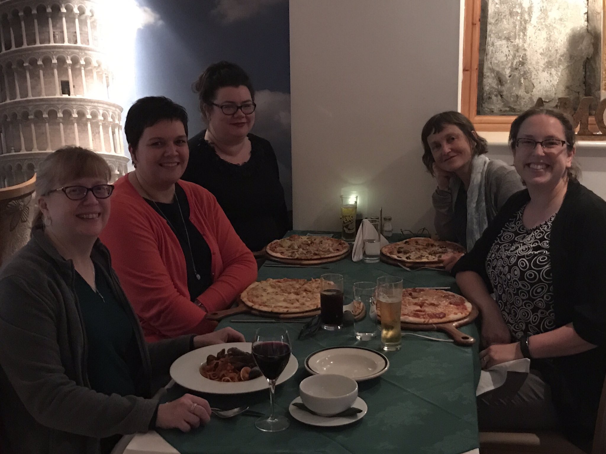 Denise Cowle (the new Marketing Director of the SfEP board!) had the bright idea of eating out in St Neots, and myself, Erin, Sabine and Jessie joined her for some very fine pizza. It was good to get out of the conference centre for a while and see the town.